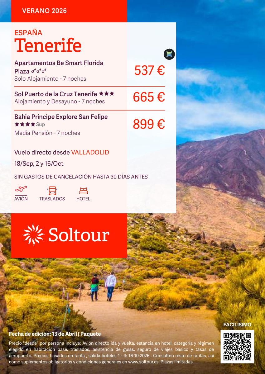 Tenerife salidas 18 de septiembre, 2 y 16 de octubre desde 537€ desde Valladolid